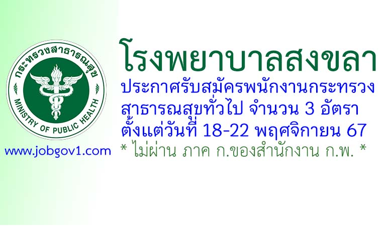 โรงพยาบาลสงขลา รับสมัครพนักงานกระทรวงสาธารณสุขทั่วไป 3 อัตรา ตั้งแต่วันที่ 18-22 พฤศจิกายน 2567