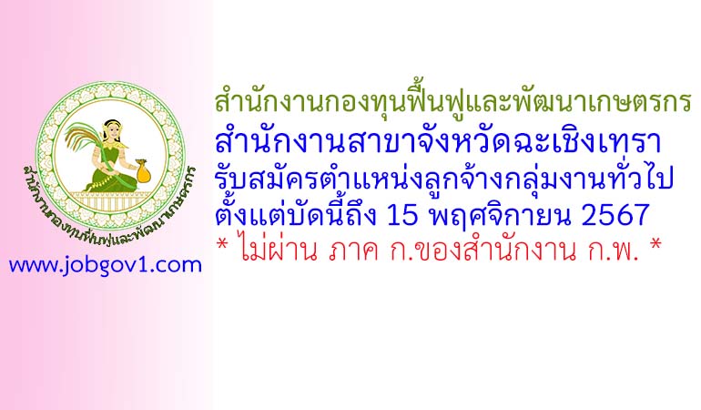 สำนักงานกองทุนฟื้นฟูและพัฒนาเกษตรกร สำนักงานสาขาจังหวัดฉะเชิงเทรา รับสมัครงาน ตำแหน่งลูกจ้างกลุ่มงานทั่วไป ตั้งแต่วันที่ 11-15 พฤศจิกายน 2567