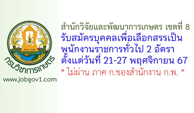 สำนักวิจัยและพัฒนาการเกษตร เขตที่ 8 จังหวัดสงขลา รับสมัครบุคคลเพื่อเลือกสรรเป็นพนักงานราชการทั่วไป 2 อัตรา ตั้งแต่วันที่ 21-27 พฤศจิกายน 2567