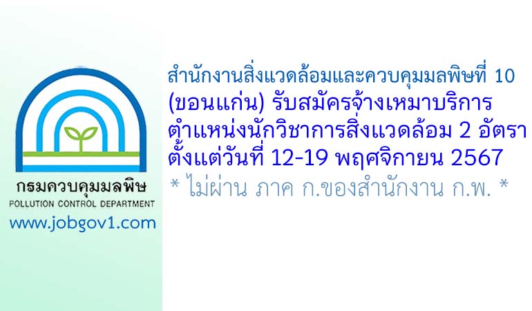 สำนักงานสิ่งแวดล้อมและควบคุมมลพิษที่ 10 (ขอนแก่น) รับสมัครจ้างเหมาบริการ ตำแหน่งนักวิชาการสิ่งแวดล้อม 2 อัตรา ตั้งแต่วันที่ 12-19 พฤศจิกายน 2567