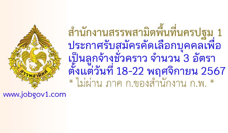 สำนักงานสรรพสามิตพื้นที่นครปฐม 1 รับสมัครคัดเลือกบุคคลเพื่อเป็นลูกจ้างชั่วคราว 3 อัตรา ตั้งแต่วันที่ 18-22 พฤศจิกายน 2567