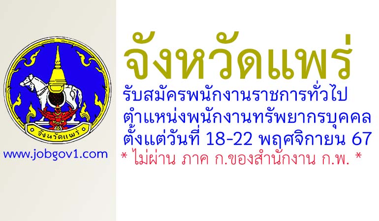 จังหวัดแพร่ รับสมัครพนักงานราชการทั่วไป ตำแหน่งพนักงานทรัพยากรบุคคล ตั้งแต่วันที่ 18-22 พฤศจิกายน 2567