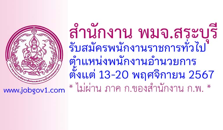 สำนักงาน พมจ.สระบุรี รับสมัครพนักงานราชการทั่วไป ตำแหน่งพนักงานอำนวยการ ตั้งแต่วันที่ 13-20 พฤศจิกายน 2567