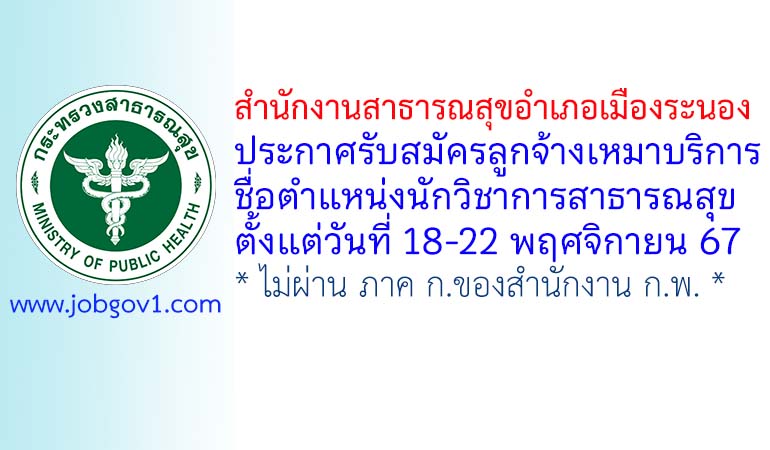 สำนักงานสาธารณสุขอำเภอเมืองระนอง รับสมัครลูกจ้างเหมาบริการ ตำแหน่งนักวิชาการสาธารณสุข ตั้งแต่วันที่ 18-22 พฤศจิกายน 2567