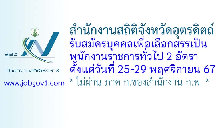 สำนักงานสถิติจังหวัดอุตรดิตถ์ รับสมัครบุคคลเพื่อเลือกสรรเป็นพนักงานราชการทั่วไป 2 อัตรา ตั้งแต่วันที่ 25-29 พฤศจิกายน 2567