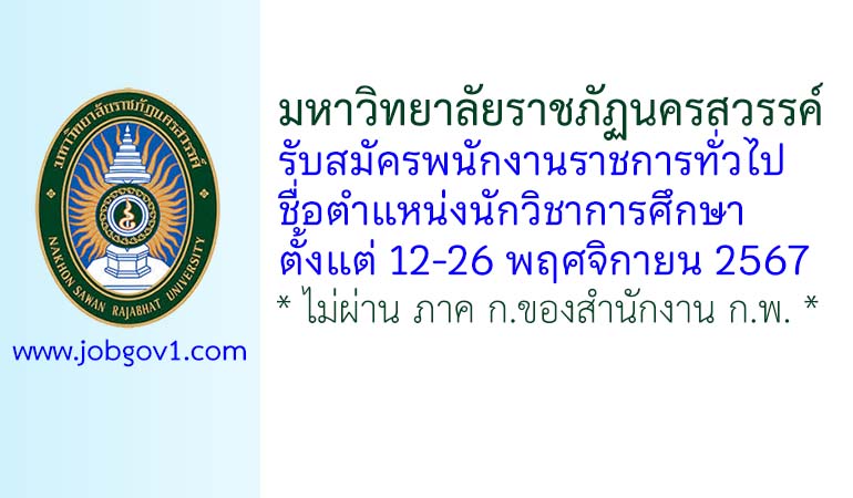 มหาวิทยาลัยราชภัฏนครสวรรค์ รับสมัครพนักงานราชการทั่วไป ตำแหน่งนักวิชาการศึกษา ตั้งแต่วันที่ 12-26 พฤศจิกายน 2567