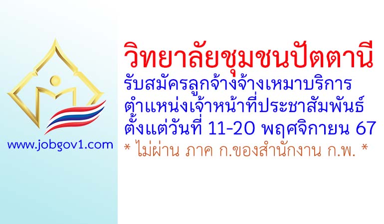 วิทยาลัยชุมชนปัตตานี รับสมัครลูกจ้างจ้างเหมาบริการ ตำแหน่งเจ้าหน้าที่ประชาสัมพันธ์ ตั้งแต่วันที่ 11-20 พฤศจิกายน 2567