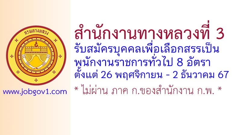 สำนักงานทางหลวงที่ 3 รับสมัครบุคคลเพื่อเลือกสรรเป็นพนักงานราชการทั่วไป 8 อัตรา ตั้งแต่ 26 พฤศจิกายน – 2 ธันวาคม 2567