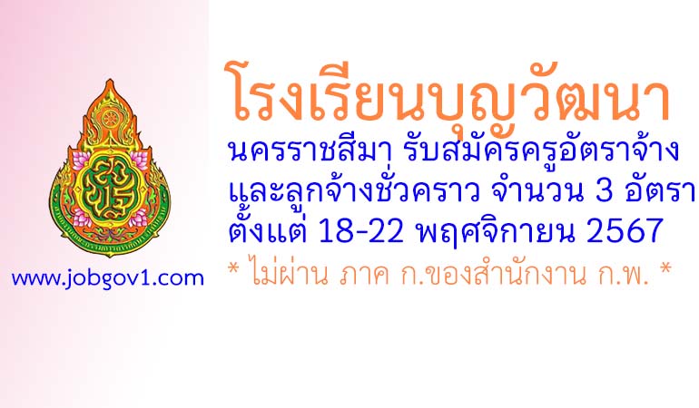 โรงเรียนบุญวัฒนา รับสมัครครูอัตราจ้าง และลูกจ้างชั่วคราว 3 อัตรา ตั้งแต่วันที่ 18-22 พฤศจิกายน 2567