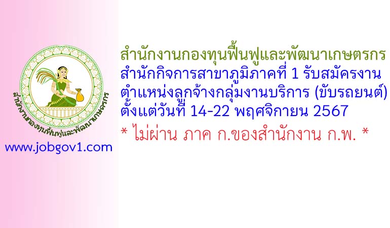 สำนักงานกองทุนฟื้นฟูและพัฒนาเกษตรกร สำนักกิจการสาขาภูมิภาคที่ 1 รับสมัครงาน ตำแหน่งลูกจ้างกลุ่มงานบริการ (ขับรถยนต์) ตั้งแต่วันที่ 14-22 พฤศจิกายน 2567