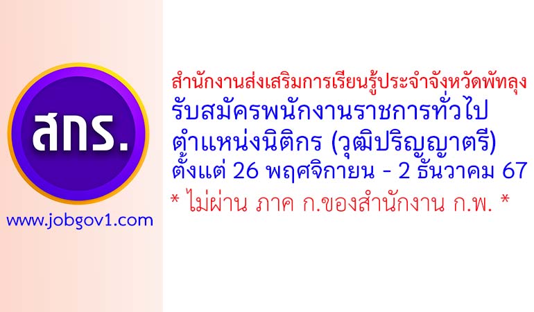 สำนักงานส่งเสริมการเรียนรู้ประจำจังหวัดพัทลุง รับสมัครพนักงานราชการทั่วไป ตำแหน่งนิติกร ตั้งแต่ 26 พฤศจิกายน – 2 ธันวาคม 2567