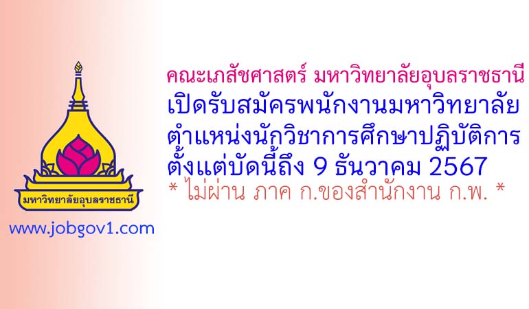 คณะเภสัชศาสตร์ มหาวิทยาลัยอุบลราชธานี รับสมัครพนักงานมหาวิทยาลัย ตำแหน่งนักวิชาการศึกษาปฏิบัติการ ตั้งแต่บัดนี้ถึง 9 ธันวาคม 2567