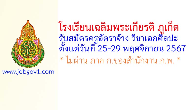 โรงเรียนเฉลิมพระเกียรติ ภูเก็ต รับสมัครครูอัตราจ้าง วิชาเอกศิลปะ ตั้งแต่วันที่ 25-29 พฤศจิกายน 2567
