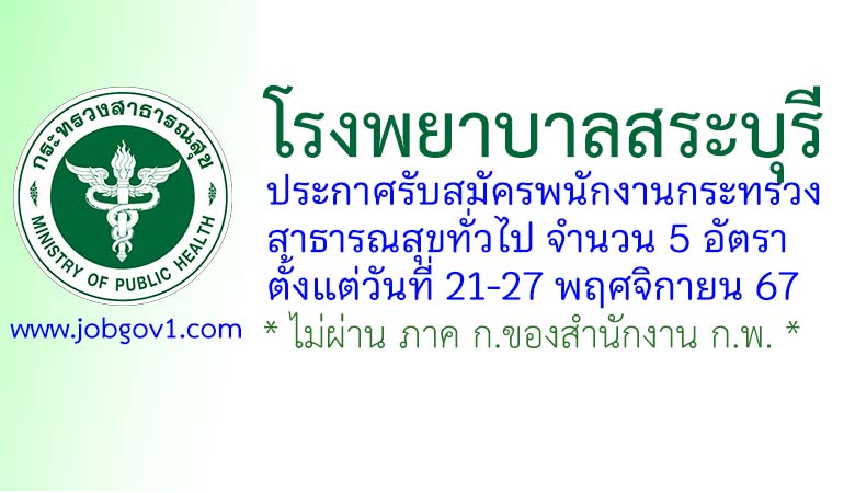 โรงพยาบาลสระบุรี รับสมัครพนักงานกระทรวงสาธารณสุขทั่วไป 5 อัตรา ตั้งแต่วันที่ 21-27 พฤศจิกายน 2567