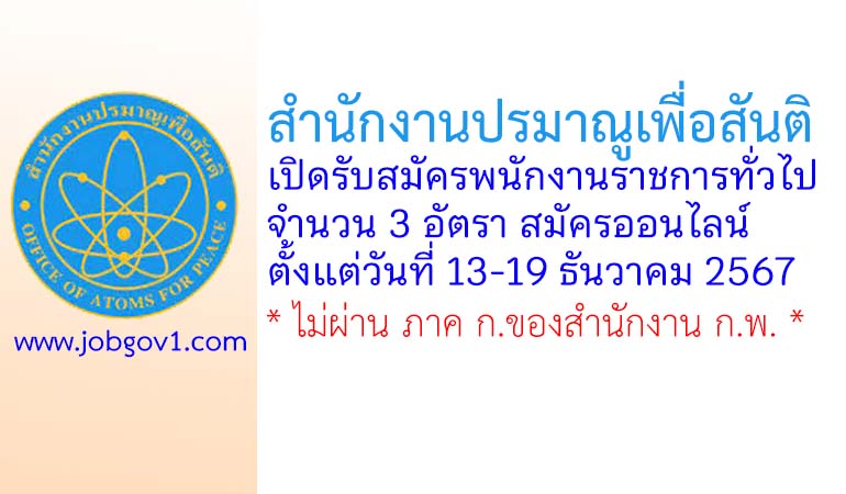สำนักงานปรมาณูเพื่อสันติ รับสมัครบุคคลเพื่อเลือกสรรเป็นพนักงานราชการทั่วไป 3 อัตรา ตั้งแต่วันที่ 13-19 ธันวาคม 2567