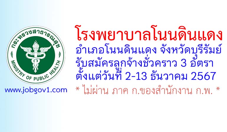 โรงพยาบาลโนนดินแดง รับสมัครลูกจ้างชั่วคราว 3 อัตรา ตั้งแต่วันที่ 2-13 ธันวาคม 2567