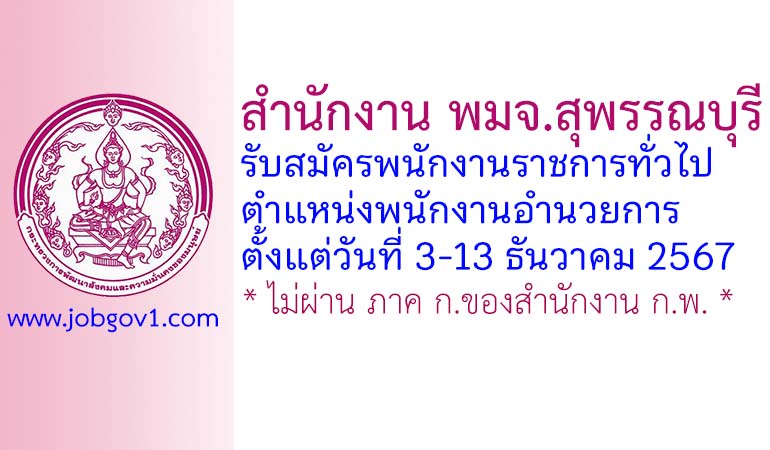 สำนักงาน พมจ.สุพรรณบุรี รับสมัครพนักงานราชการทั่วไป ตำแหน่งพนักงานอำนวยการ ตั้งแต่วันที่ 3-13 ธันวาคม 2567