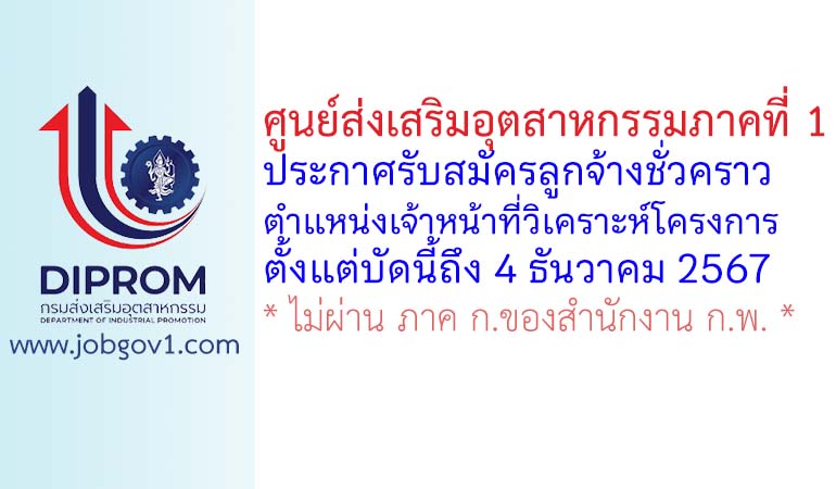 ศูนย์ส่งเสริมอุตสาหกรรมภาคที่ 1 รับสมัครลูกจ้างชั่วคราว ตำแหน่งเจ้าหน้าที่วิเคราะห์โครงการ ตั้งแต่บัดนี้ถึง 4 ธันวาคม 2567