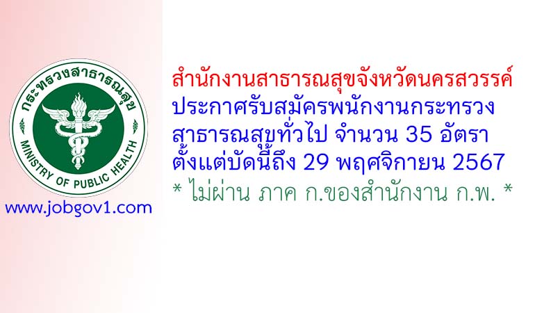 สำนักงานสาธารณสุขจังหวัดนครสวรรค์ รับสมัครพนักงานกระทรวงสาธารณสุขทั่วไป 35 อัตรา ตั้งแต่บัดนี้ถึง 29 พฤศจิกายน 2567