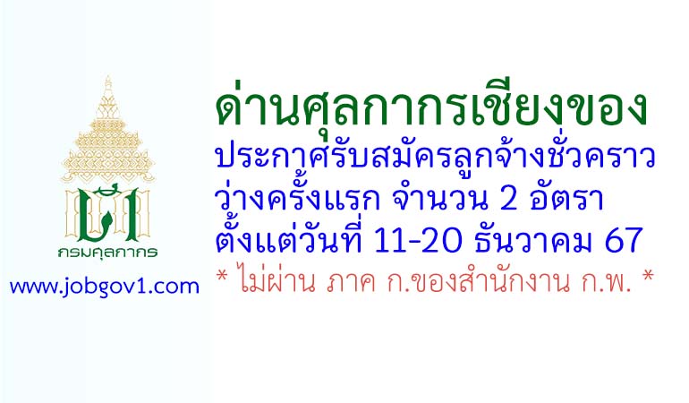 ด่านศุลกากรเชียงของ รับสมัครลูกจ้างชั่วคราว 2 อัตรา ตั้งแต่วันที่ 11-20 ธันวาคม 2567