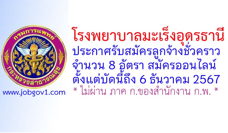 โรงพยาบาลมะเร็งอุดรธานี รับสมัครลูกจ้างชั่วคราว 8 อัตรา ตั้งแต่บัดนี้ถึง 6 ธันวาคม 2567