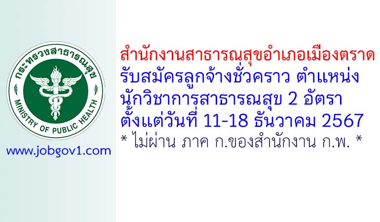 สำนักงานสาธารณสุขอำเภอเมืองตราด รับสมัครลูกจ้างชั่วคราว ตำแหน่งนักวิชาการสาธารณสุข 2 อัตรา ตั้งแต่วันที่ 11-18 ธันวาคม 2567