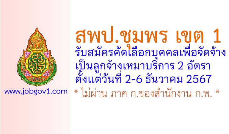 สพป.ชุมพร เขต 1 รับสมัครลูกจ้างเหมาบริการ 2 อัตรา ตั้งแต่วันที่ 2-6 ธันวาคม 2567