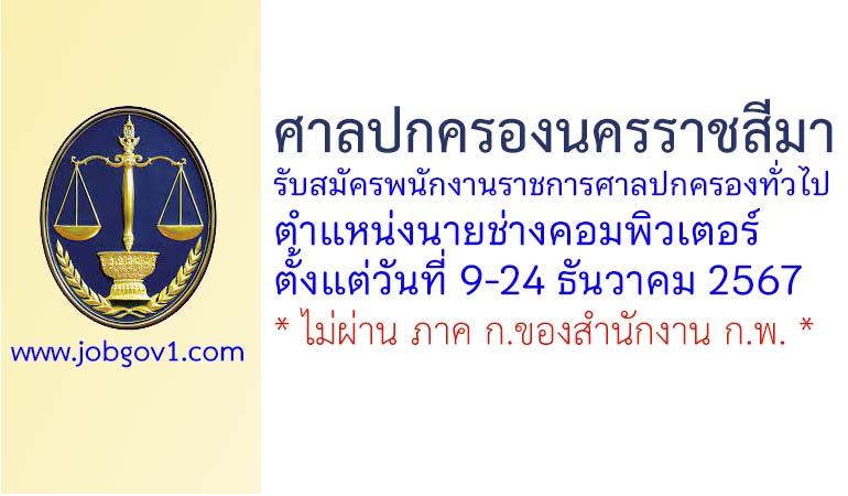 ศาลปกครองนครราชสีมา รับสมัครพนักงานราชการศาลปกครองทั่วไป ตำแหน่งนายช่างคอมพิวเตอร์ ตั้งแต่วันที่ 9-24 ธันวาคม 2567