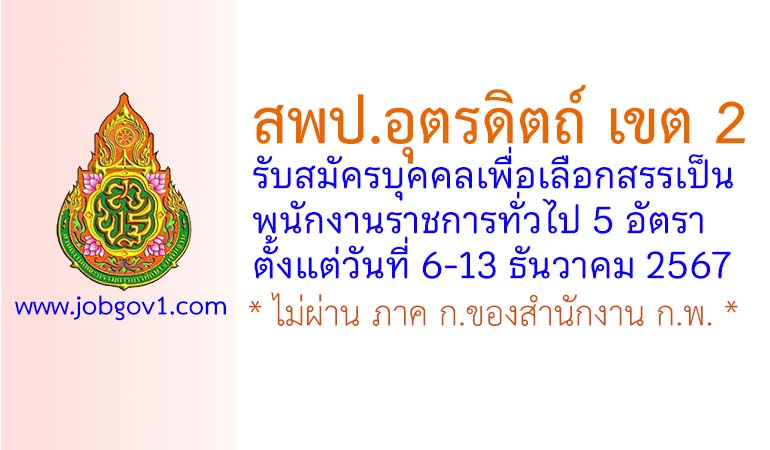 สพป.อุตรดิตถ์ เขต 2 รับสมัครบุคคลเพื่อเลือกสรรเป็นพนักงานราชการทั่วไป 5 อัตรา ตั้งแต่วันที่ 6-13 ธันวาคม 2567
