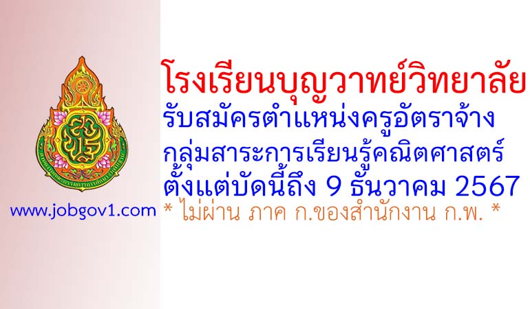 โรงเรียนบุญวาทย์วิทยาลัย รับสมัครครูอัตราจ้าง กลุ่มสาระการเรียนรู้คณิตศาสตร์ ตั้งแต่บัดนี้ถึง 9 ธันวาคม 2567