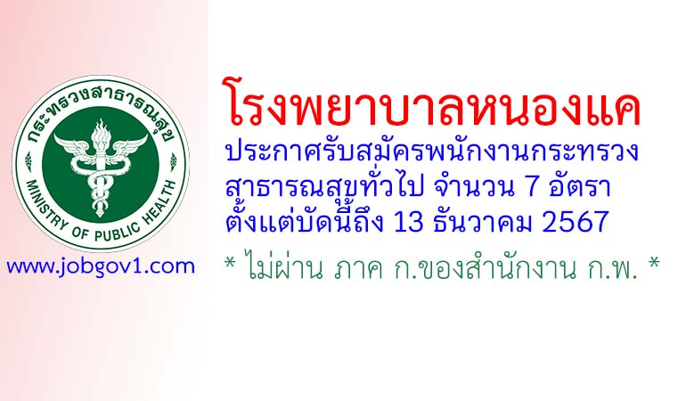 โรงพยาบาลหนองแค รับสมัครพนักงานกระทรวงสาธารณสุขทั่วไป 7 อัตรา ตั้งแต่บัดนี้ถึง 13 ธันวาคม 2567