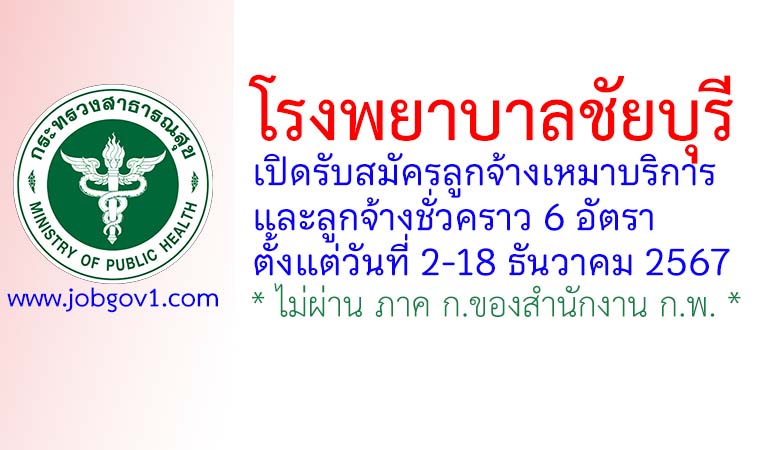 โรงพยาบาลชัยบุรี รับสมัครลูกจ้างเหมาบริการและลูกจ้างชั่วคราว 6 อัตรา ตั้งแต่วันที่ 2-18 ธันวาคม 2567