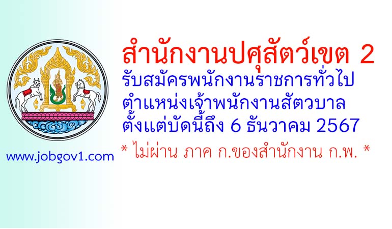 สำนักงานปศุสัตว์เขต 2 รับสมัครพนักงานราชการทั่วไป ตำแหน่งเจ้าพนักงานสัตวบาล ตั้งแต่บัดนี้ถึง 6 ธันวาคม 2567
