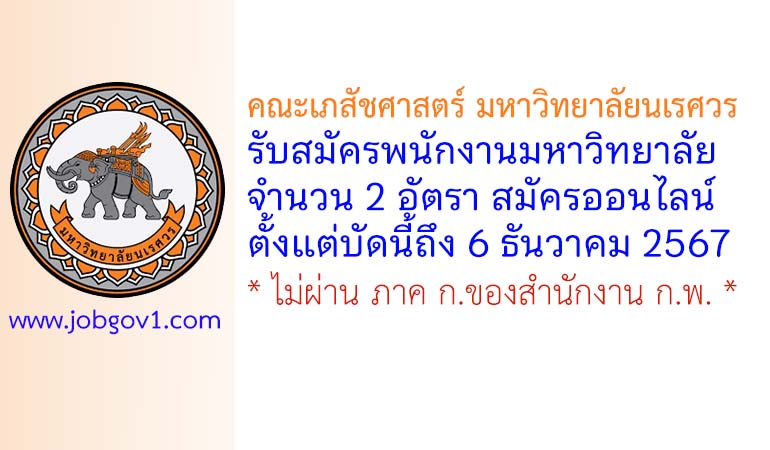 คณะเภสัชศาสตร์ มหาวิทยาลัยนเรศวร รับสมัครพนักงานมหาวิทยาลัย 2 อัตรา ตั้งแต่บัดนี้ถึง 6 ธันวาคม 2567