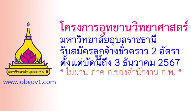 โครงการอุทยานวิทยาศาสตร์ มหาวิทยาลัยอุบลราชธานี รับสมัครลูกจ้างชั่วคราว 2 อัตรา ตั้งแต่บัดนี้ถึง 3 ธันวาคม 2567