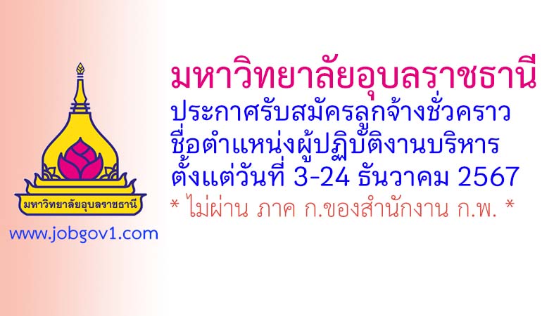 มหาวิทยาลัยอุบลราชธานี รับสมัครลูกจ้างชั่วคราว ตำแหน่งผู้ปฏิบัติงานบริหาร ตั้งแต่วันที่ 3-24 ธันวาคม 2567