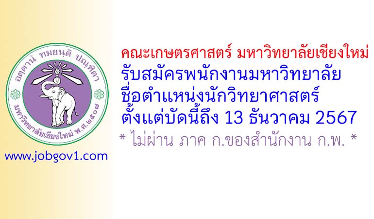 คณะเกษตรศาสตร์ มหาวิทยาลัยเชียงใหม่ รับสมัครพนักงานมหาวิทยาลัย ตำแหน่งนักวิทยาศาสตร์ ตั้งแต่บัดนี้ถึง 13 ธันวาคม 2567