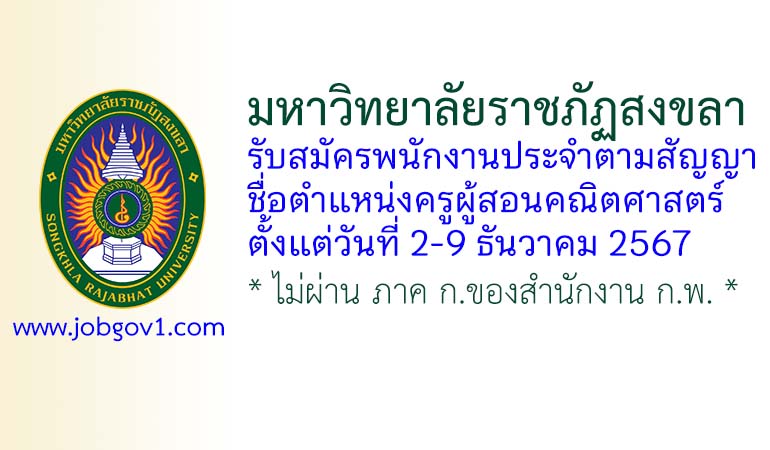 มหาวิทยาลัยราชภัฏสงขลา รับสมัครพนักงานประจำตามสัญญา ตำแหน่งครูผู้สอนคณิตศาสตร์ ตั้งแต่วันที่ 2-9 ธันวาคม 2567