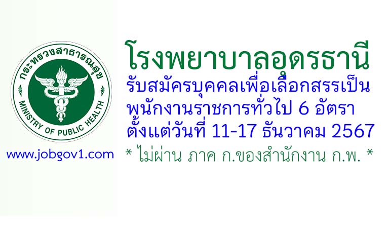 โรงพยาบาลอุดรธานี รับสมัครบุคคลเพื่อเลือกสรรเป็นพนักงานราชการทั่วไป 6 อัตรา ตั้งแต่วันที่ 11-17 ธันวาคม 2567