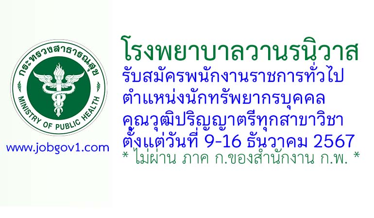 โรงพยาบาลวานรนิวาส รับสมัครพนักงานราชการทั่วไป ตำแหน่งนักทรัพยากรบุคคล ตั้งแต่วันที่ 9-16 ธันวาคม 2567