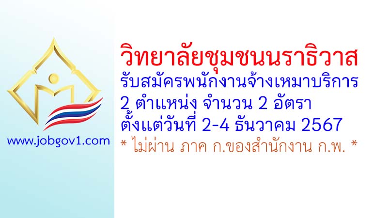 วิทยาลัยชุมชนนราธิวาส รับสมัครพนักงานจ้างเหมาบริการ จำนวน 2 อัตรา ตั้งแต่วันที่ 2-4 ธันวาคม 2567