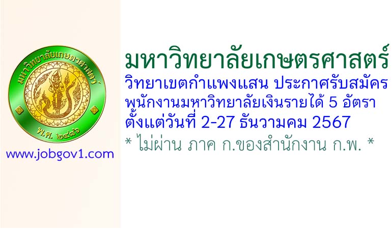 มหาวิทยาลัยเกษตรศาสตร์ วิทยาเขตกำแพงแสน รับสมัครพนักงานมหาวิทยาลัยเงินรายได้ 5 อัตรา ตั้งแต่วันที่ 2-27 ธันวาคม 2567