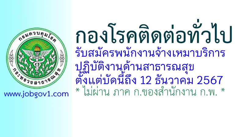 กองโรคติดต่อทั่วไป รับสมัครพนักงานจ้างเหมาบริการปฏิบัติงานด้านสาธารณสุข ตั้งแต่บัดนี้ถึง 12 ธันวาคม 2567