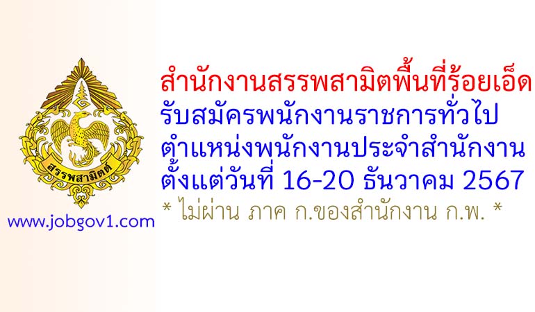 สำนักงานสรรพสามิตพื้นที่ร้อยเอ็ด รับสมัครพนักงานราชการทั่วไป ตำแหน่งพนักงานประจำสำนักงาน ตั้งแต่วันที่ 16-20 ธันวาคม 2567