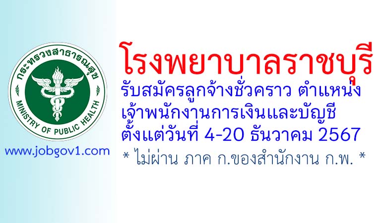 โรงพยาบาลราชบุรี รับสมัครลูกจ้างชั่วคราว ตำแหน่งเจ้าพนักงานการเงินและบัญชี ตั้งแต่วันที่ 4-20 ธันวาคม 2567