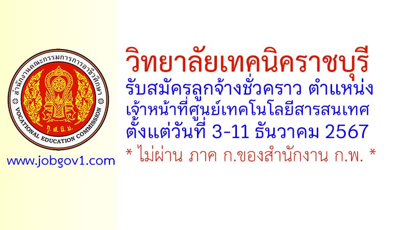 วิทยาลัยเทคนิคราชบุรี รับสมัครลูกจ้างชั่วคราว ตำแหน่งเจ้าหน้าที่ศูนย์เทคโนโลยีสารสนเทศ ตั้งแต่วันที่ 3-11 ธันวาคม 2567
