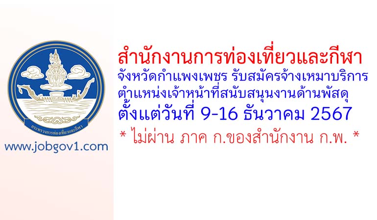 สำนักงานการท่องเที่ยวและกีฬาจังหวัดกำแพงเพชร รับสมัครจ้างเหมาบริการ ตำแหน่งเจ้าหน้าที่สนับสนุนงานด้านพัสดุ ตั้งแต่วันที่ 9-16 ธันวาคม 2567