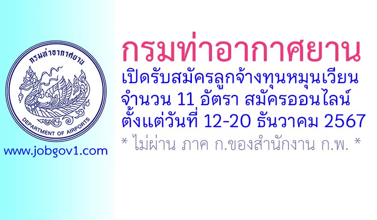 กรมท่าอากาศยาน รับสมัครบุคคลเพื่อเลือกสรรเป็นลูกจ้างทุนหมุนเวียน 11 อัตรา ตั้งแต่วันที่ 12-20 ธันวาคม 2567