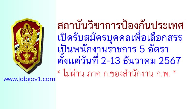 สถาบันวิชาการป้องกันประเทศ รับสมัครบุคคลเพื่อเลือกสรรเป็นพนักงานราชการ 5 อัตรา ตั้งแต่วันที่ 2-13 ธันวาคม 2567