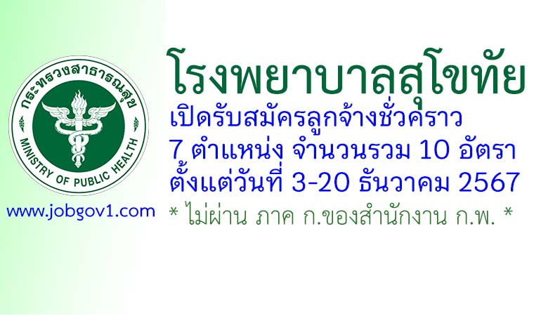 โรงพยาบาลสุโขทัย รับสมัครลูกจ้างชั่วคราว 10 อัตรา ตั้งแต่วันที่ 3-20 ธันวาคม 2567